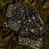 Women’s Elegant Black Georgette/Chiffon Saree with Intricate Gold & Silver Embellished Border – Paired with Heavy Sequin & Zari Work Blouse for Festive & Wedding Wear